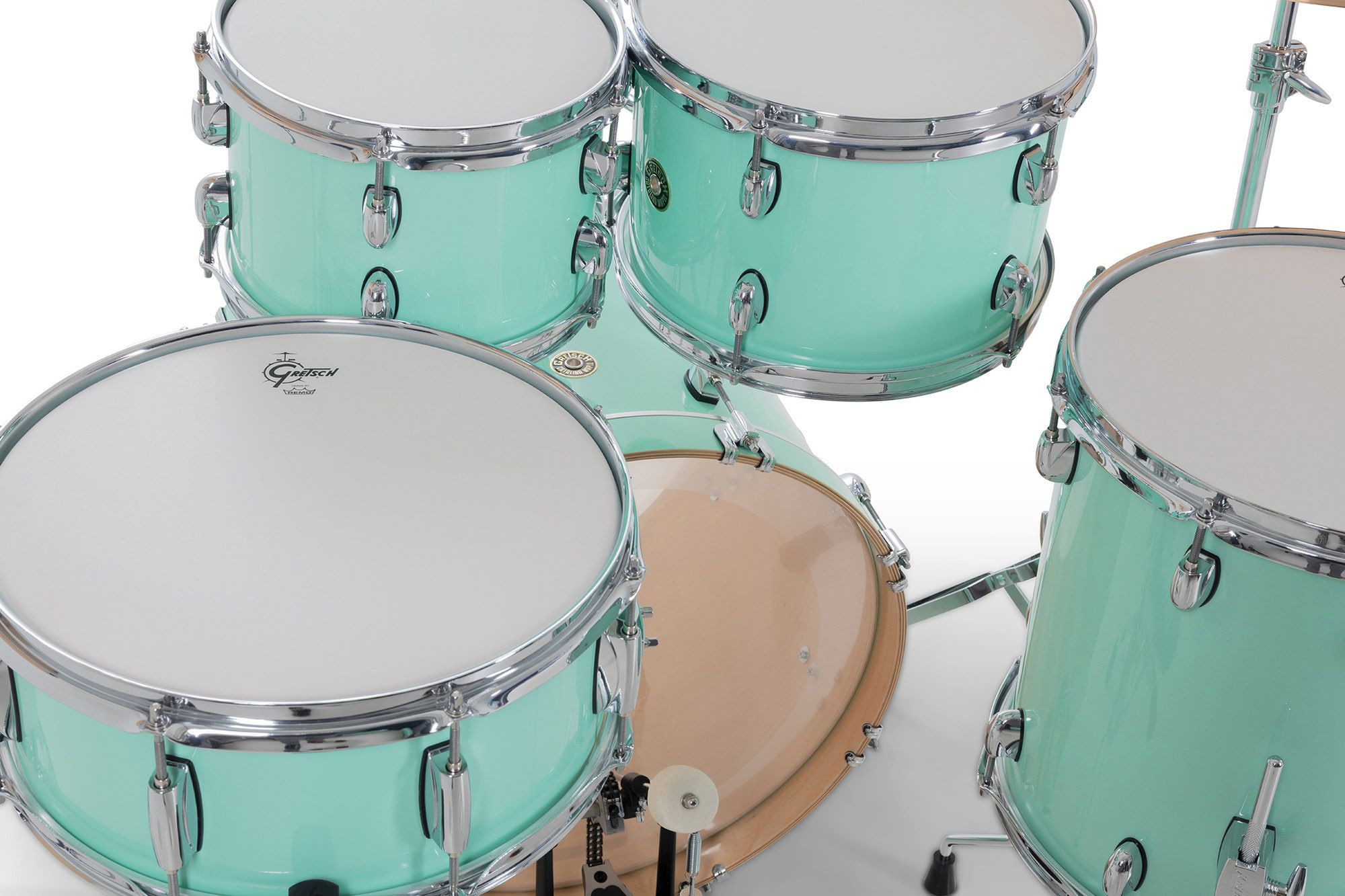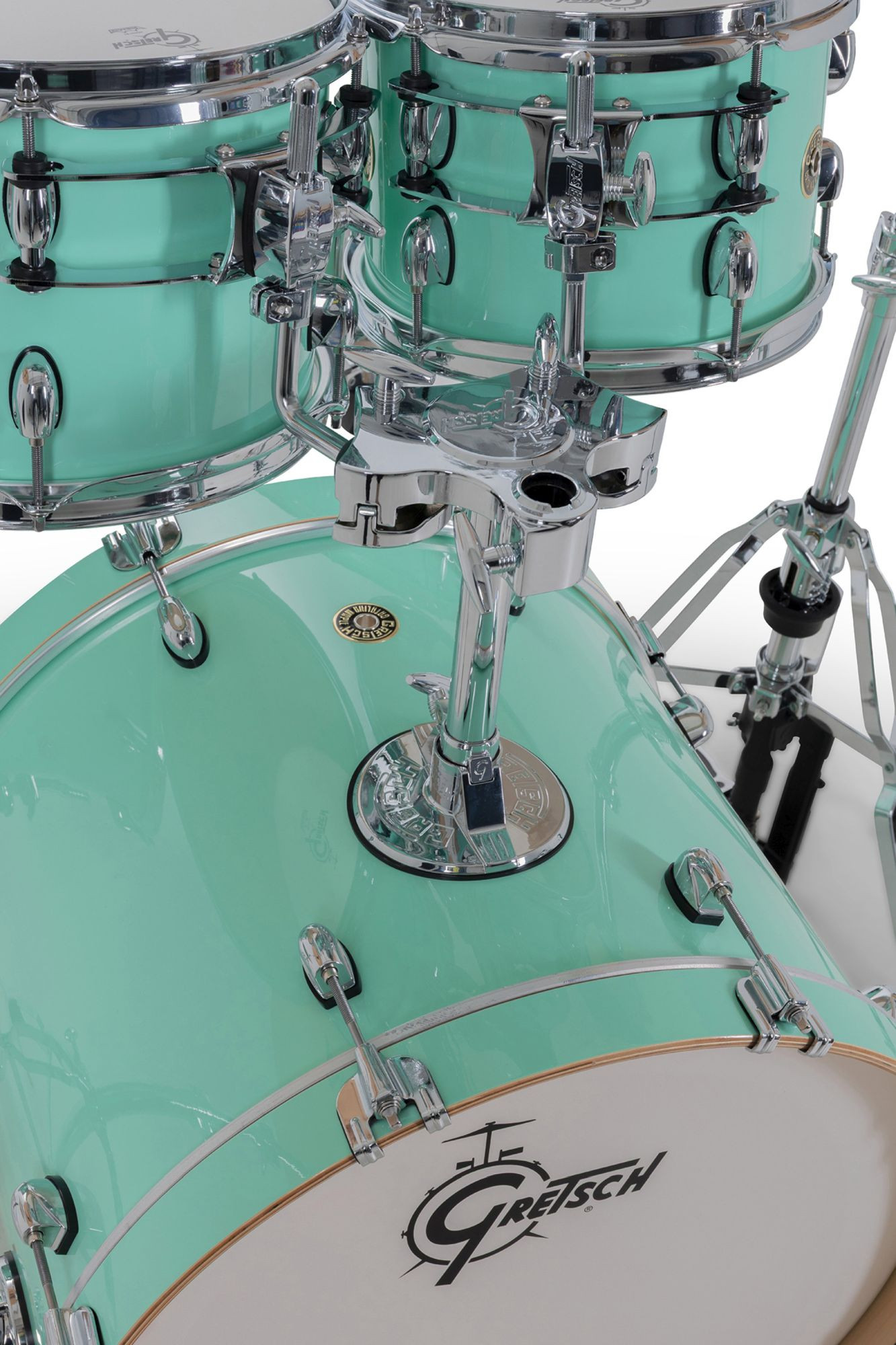 Com seu design de hardware elegante e inovador e os lendários cascos exclusivo da Gretsch, o Catalina Maple é um dos favoritos entre bateristas que buscam um kit com som excepcional, experiência ergonômica e visual moderno e sofisticado.O sistema de montagem do Catalina Maple inclui uma placa de fixação redonda tipo "gas cap" no bumbo e um sistema de suspensão GTS de perfil ultrabaixo. Para um toque preciso e confortável, os parafusos e presilhas Gretsch T-Wing são aplicados em todas as conexões, enquanto as garras do bumbo com isolamento de borracha, ajudam a preservar a aparência dos aros.Os cascos de 7 camadas em maple seguem a fórmula exclusiva da Gretsch, trazendo bordas de 30 graus e interiores naturais para um som encorpado e equilibrado. Os bumbos contam com pés telescópicos e aros de madeira maple combinando, garantindo estabilidade e estilo. Já os tons e caixas são equipados com aros de três flanges de 2,5 mm, e todas as peças vêm com peles Remo®, proporcionando qualidade sonora e durabilidade excepcionais.