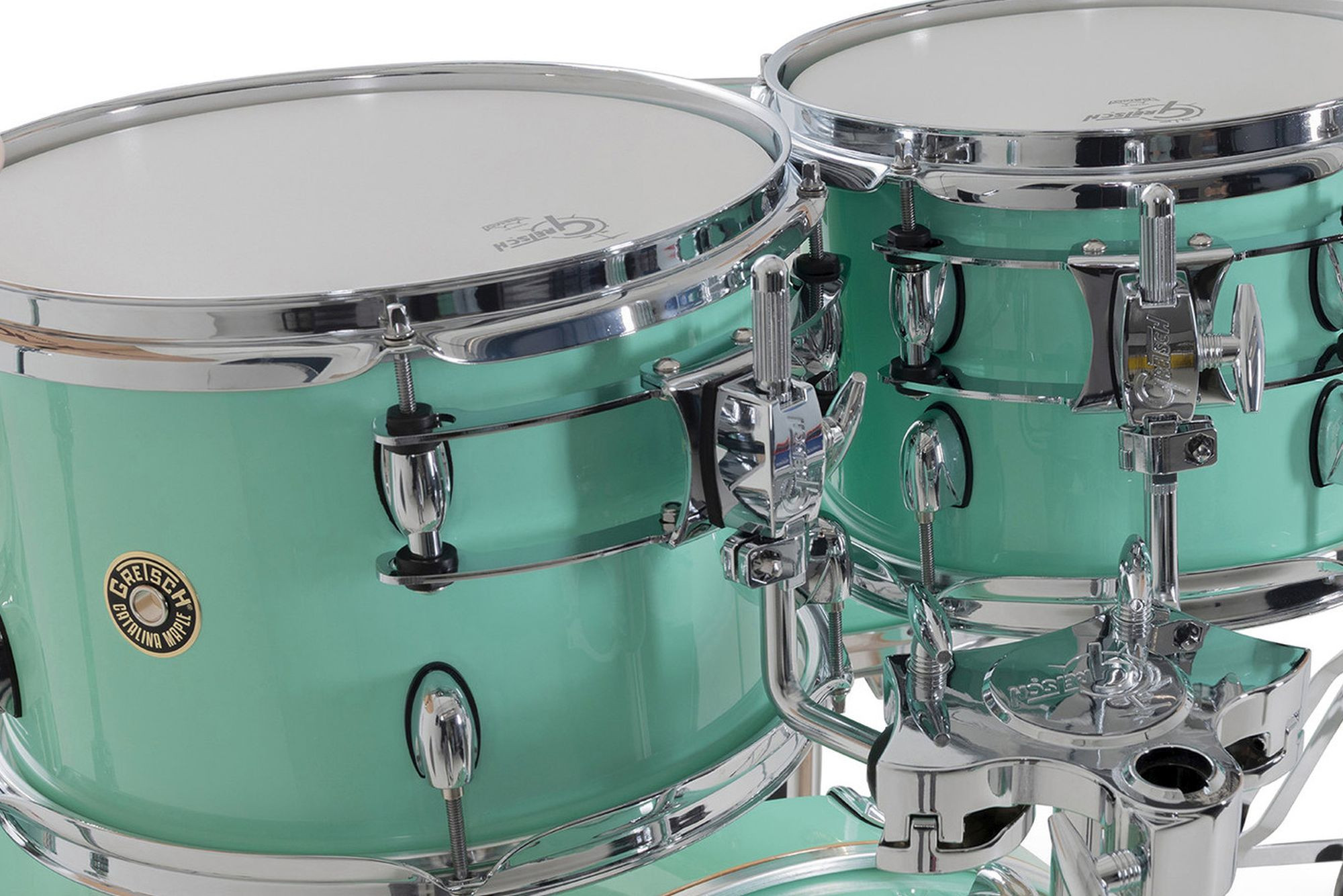 Com seu design de hardware elegante e inovador e os lendários cascos exclusivo da Gretsch, o Catalina Maple é um dos favoritos entre bateristas que buscam um kit com som excepcional, experiência ergonômica e visual moderno e sofisticado.O sistema de montagem do Catalina Maple inclui uma placa de fixação redonda tipo "gas cap" no bumbo e um sistema de suspensão GTS de perfil ultrabaixo. Para um toque preciso e confortável, os parafusos e presilhas Gretsch T-Wing são aplicados em todas as conexões, enquanto as garras do bumbo com isolamento de borracha, ajudam a preservar a aparência dos aros.Os cascos de 7 camadas em maple seguem a fórmula exclusiva da Gretsch, trazendo bordas de 30 graus e interiores naturais para um som encorpado e equilibrado. Os bumbos contam com pés telescópicos e aros de madeira maple combinando, garantindo estabilidade e estilo. Já os tons e caixas são equipados com aros de três flanges de 2,5 mm, e todas as peças vêm com peles Remo®, proporcionando qualidade sonora e durabilidade excepcionais.