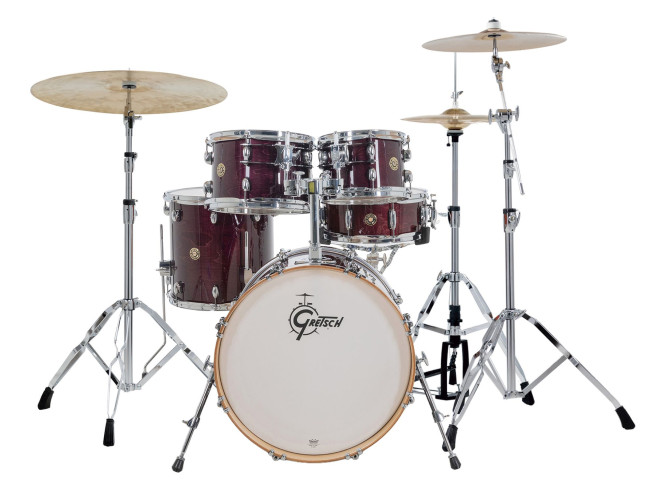 Com seu design de hardware elegante e inovador e os lendários cascos exclusivo da Gretsch, o Catalina Maple é um dos favoritos entre bateristas que buscam um kit com som excepcional, experiência ergonômica e visual moderno e sofisticado.O sistema de montagem do Catalina Maple inclui uma placa de fixação redonda tipo "gas cap" no bumbo e um sistema de suspensão GTS de perfil ultrabaixo. Para um toque preciso e confortável, os parafusos e presilhas Gretsch T-Wing são aplicados em todas as conexões, enquanto as garras do bumbo com isolamento de borracha, ajudam a preservar a aparência dos aros.Os cascos de 7 camadas em maple seguem a fórmula exclusiva da Gretsch, trazendo bordas de 30 graus e interiores naturais para um som encorpado e equilibrado. Os bumbos contam com pés telescópicos e aros de madeira maple combinando, garantindo estabilidade e estilo. Já os tons e caixas são equipados com aros de três flanges de 2,5 mm, e todas as peças vêm com peles Remo®, proporcionando qualidade sonora e durabilidade excepcionais.