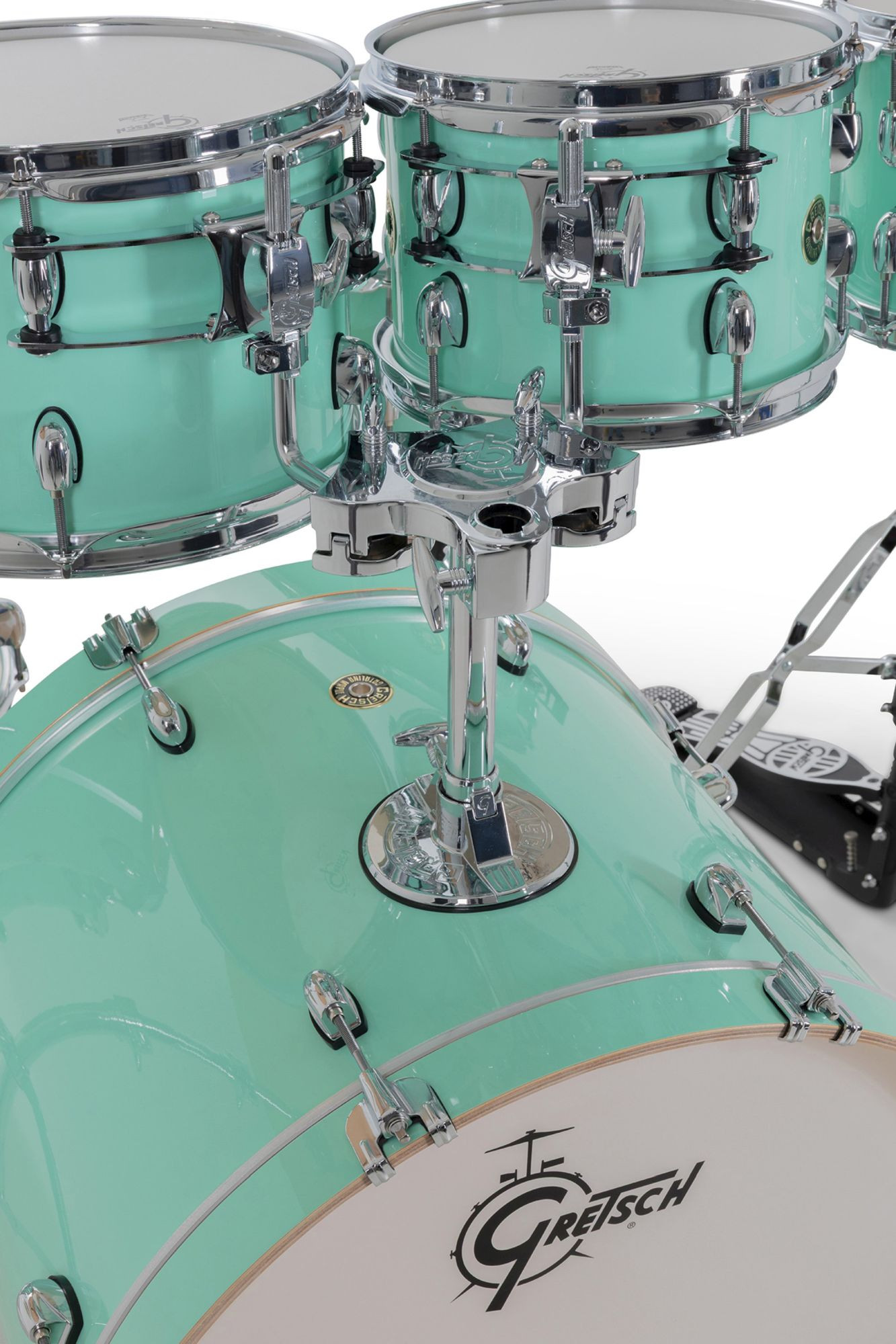 Com seu design de hardware elegante e inovador e os lendários cascos exclusivo da Gretsch, o Catalina Maple é um dos favoritos entre bateristas que buscam um kit com som excepcional, experiência ergonômica e visual moderno e sofisticado.O sistema de montagem do Catalina Maple inclui uma placa de fixação redonda tipo "gas cap" no bumbo e um sistema de suspensão GTS de perfil ultrabaixo. Para um toque preciso e confortável, os parafusos e presilhas Gretsch T-Wing são aplicados em todas as conexões, enquanto as garras do bumbo com isolamento de borracha, ajudam a preservar a aparência dos aros.Os cascos de 7 camadas em maple seguem a fórmula exclusiva da Gretsch, trazendo bordas de 30 graus e interiores naturais para um som encorpado e equilibrado. Os bumbos contam com pés telescópicos e aros de madeira maple combinando, garantindo estabilidade e estilo. Já os tons e caixas são equipados com aros de três flanges de 2,5 mm, e todas as peças vêm com peles Remo®, proporcionando qualidade sonora e durabilidade excepcionais.