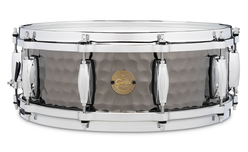 Está é a linha de caixa Gretsch Full Range de Aço de 14X5", com espessura de 1.2mm e adicionando o tradicional martelamento Gretsch, oferecendo um som focado e mais seco. As caixas de Steel Gretsch já são acompanhadas pelos aros Die-Cast, pele Remo e grande ajustes no automático.