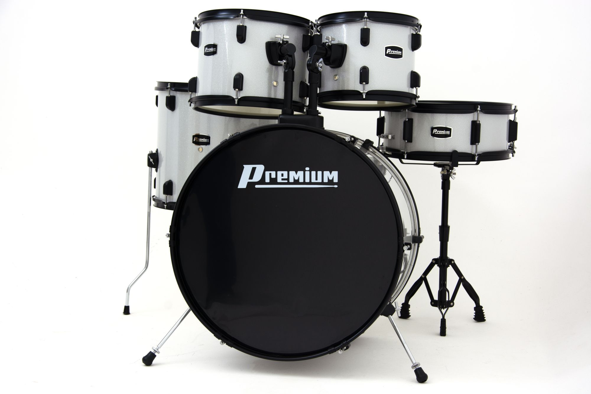 A bateria Premium DX422 combina design sofisticado e acabamento impecável com sonoridade marcante, proporcionando uma experiência musical .Possui ferragens em preto fosco que unem resistência e estilo, acompanha banco e pratos.