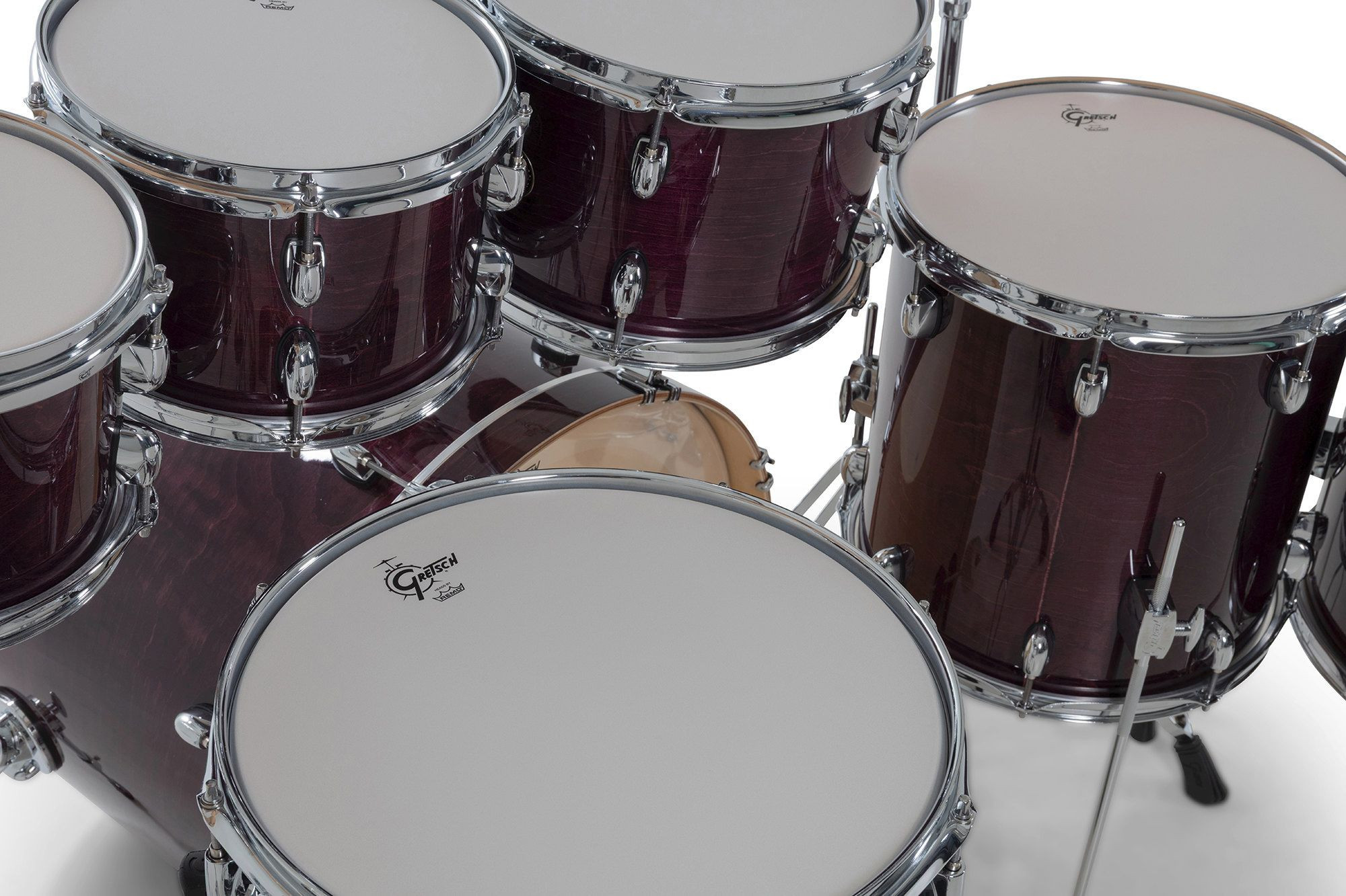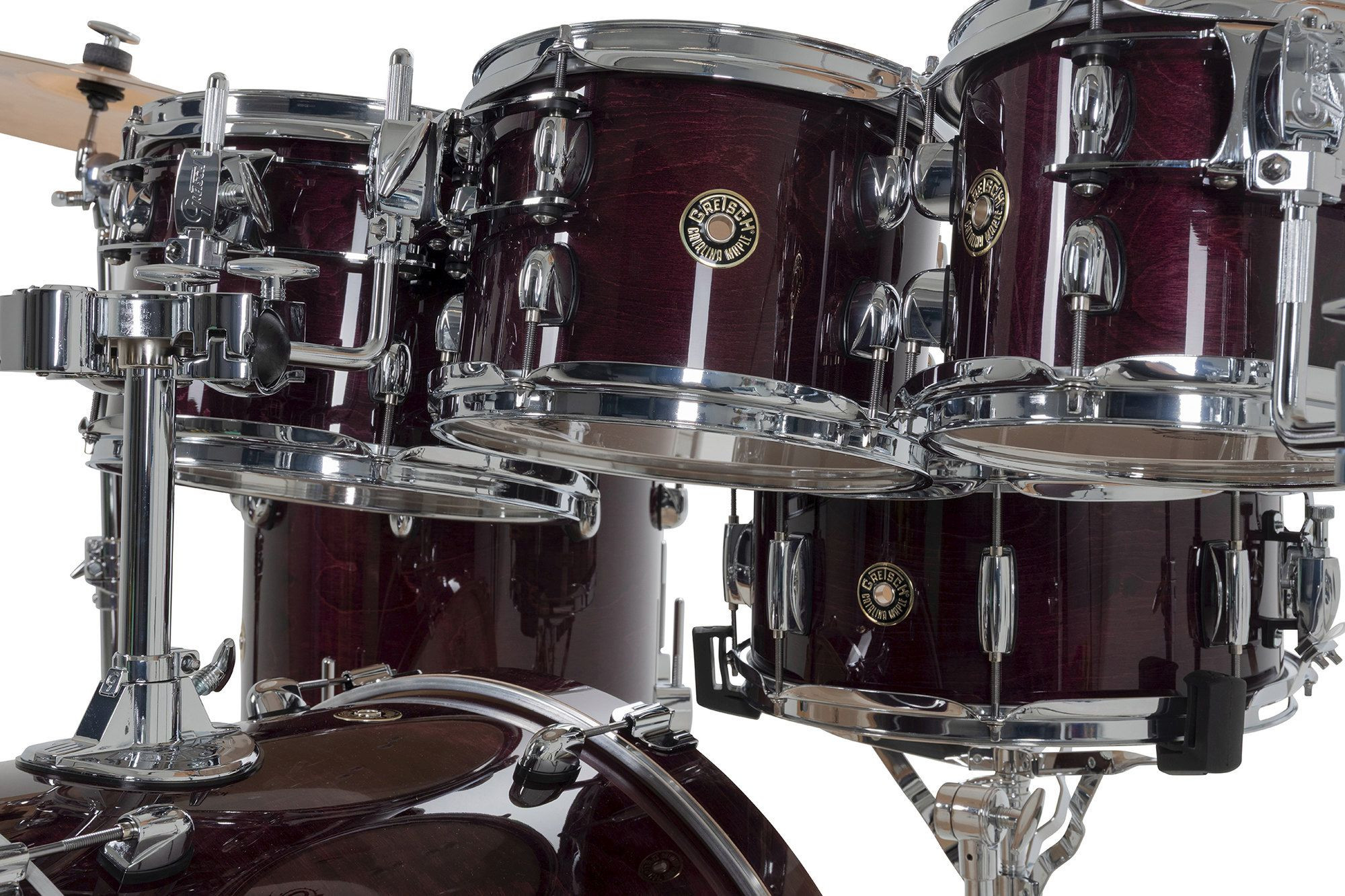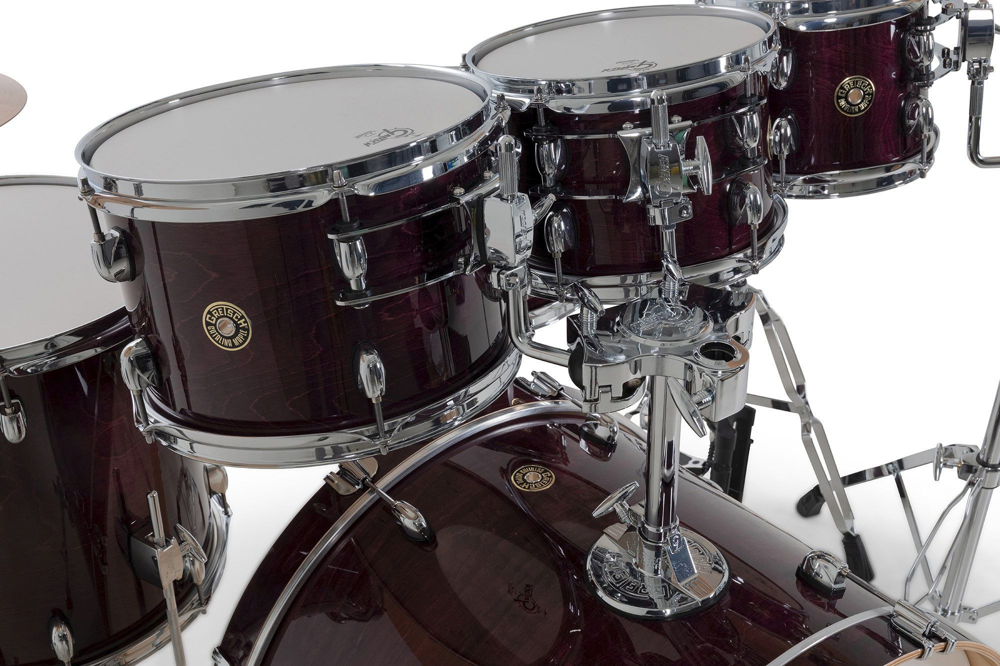 Com seu design de hardware elegante e inovador e os lendários cascos exclusivo da Gretsch, o Catalina Maple é um dos favoritos entre bateristas que buscam um kit com som excepcional, experiência ergonômica e visual moderno e sofisticado.O sistema de montagem do Catalina Maple inclui uma placa de fixação redonda tipo "gas cap" no bumbo e um sistema de suspensão GTS de perfil ultrabaixo. Para um toque preciso e confortável, os parafusos e presilhas Gretsch T-Wing são aplicados em todas as conexões, enquanto as garras do bumbo com isolamento de borracha, ajudam a preservar a aparência dos aros.Os cascos de 7 camadas em maple seguem a fórmula exclusiva da Gretsch, trazendo bordas de 30 graus e interiores naturais para um som encorpado e equilibrado. Os bumbos contam com pés telescópicos e aros de madeira maple combinando, garantindo estabilidade e estilo. Já os tons e caixas são equipados com aros de três flanges de 2,5 mm, e todas as peças vêm com peles Remo®, proporcionando qualidade sonora e durabilidade excepcionais.