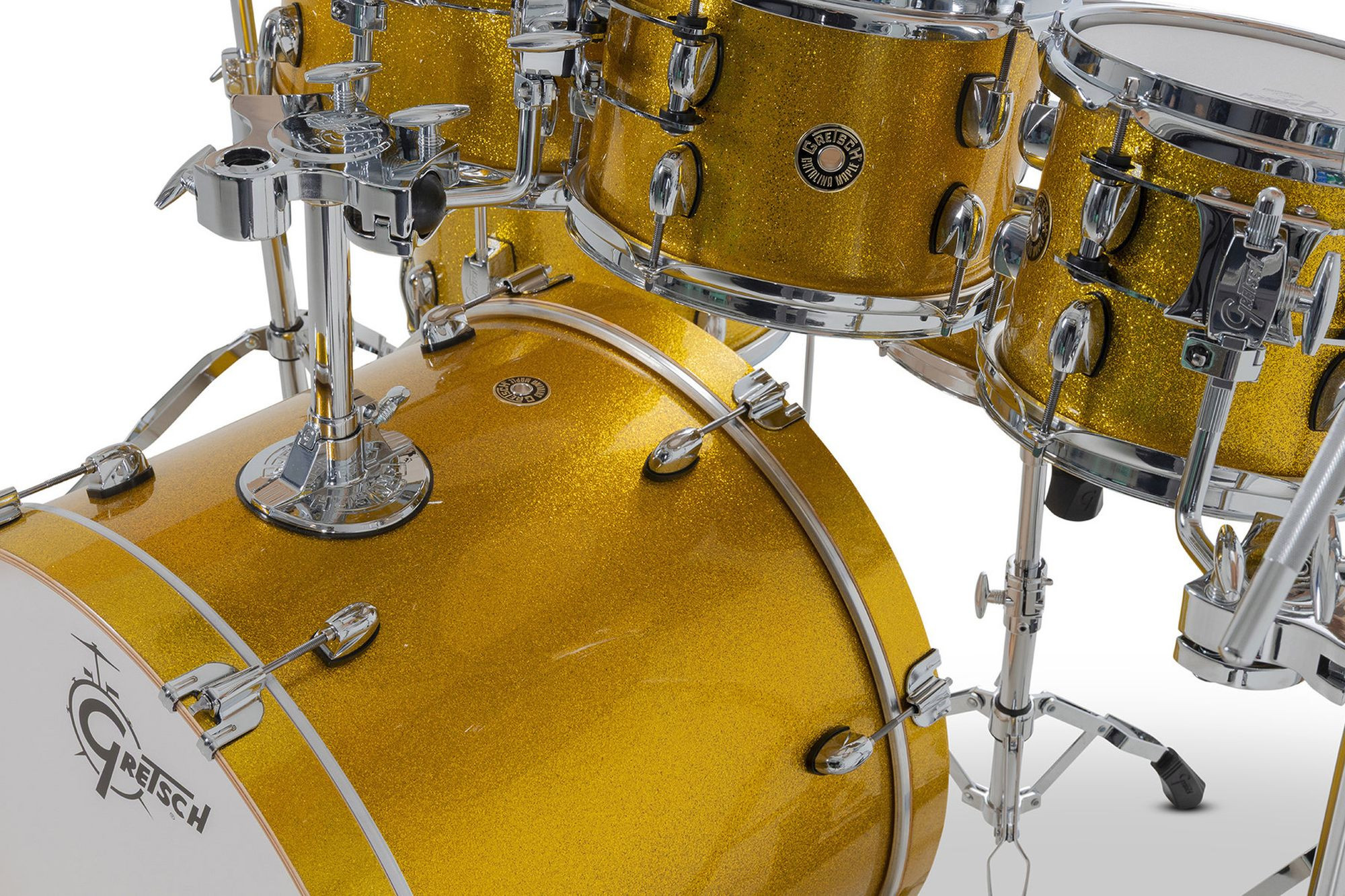 Com seu design de hardware elegante e inovador e os lendários cascos exclusivo da Gretsch, o Catalina Maple é um dos favoritos entre bateristas que buscam um kit com som excepcional, experiência ergonômica e visual moderno e sofisticado.O sistema de montagem do Catalina Maple inclui uma placa de fixação redonda tipo "gas cap" no bumbo e um sistema de suspensão GTS de perfil ultrabaixo. Para um toque preciso e confortável, os parafusos e presilhas Gretsch T-Wing são aplicados em todas as conexões, enquanto as garras do bumbo com isolamento de borracha, ajudam a preservar a aparência dos aros.Os cascos de 7 camadas em maple seguem a fórmula exclusiva da Gretsch, trazendo bordas de 30 graus e interiores naturais para um som encorpado e equilibrado. Os bumbos contam com pés telescópicos e aros de madeira maple combinando, garantindo estabilidade e estilo. Já os tons e caixas são equipados com aros de três flanges de 2,5 mm, e todas as peças vêm com peles Remo®, proporcionando qualidade sonora e durabilidade excepcionais.