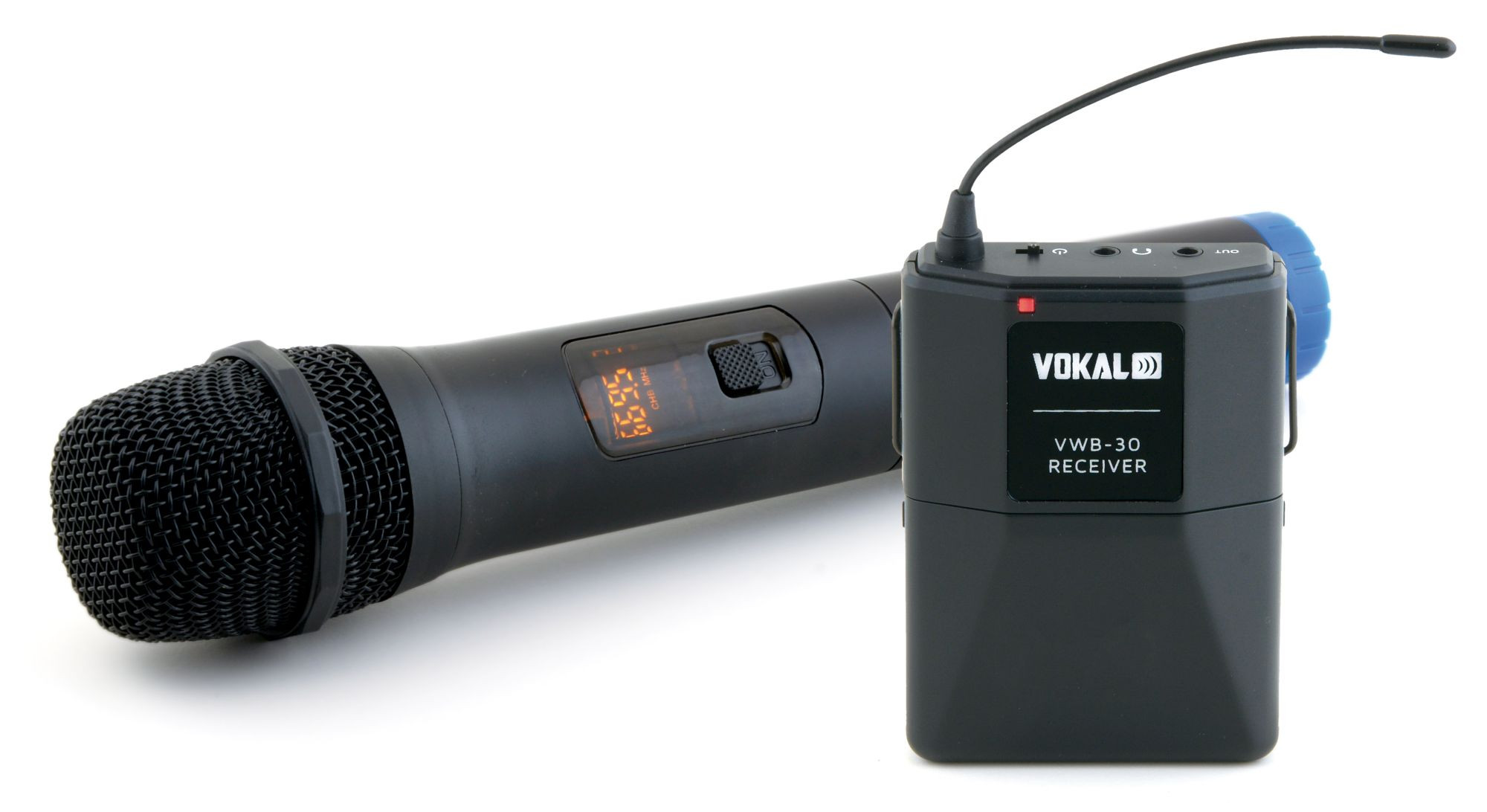 Transmissor de mão com display indicador de canal, frequência e status de bateria