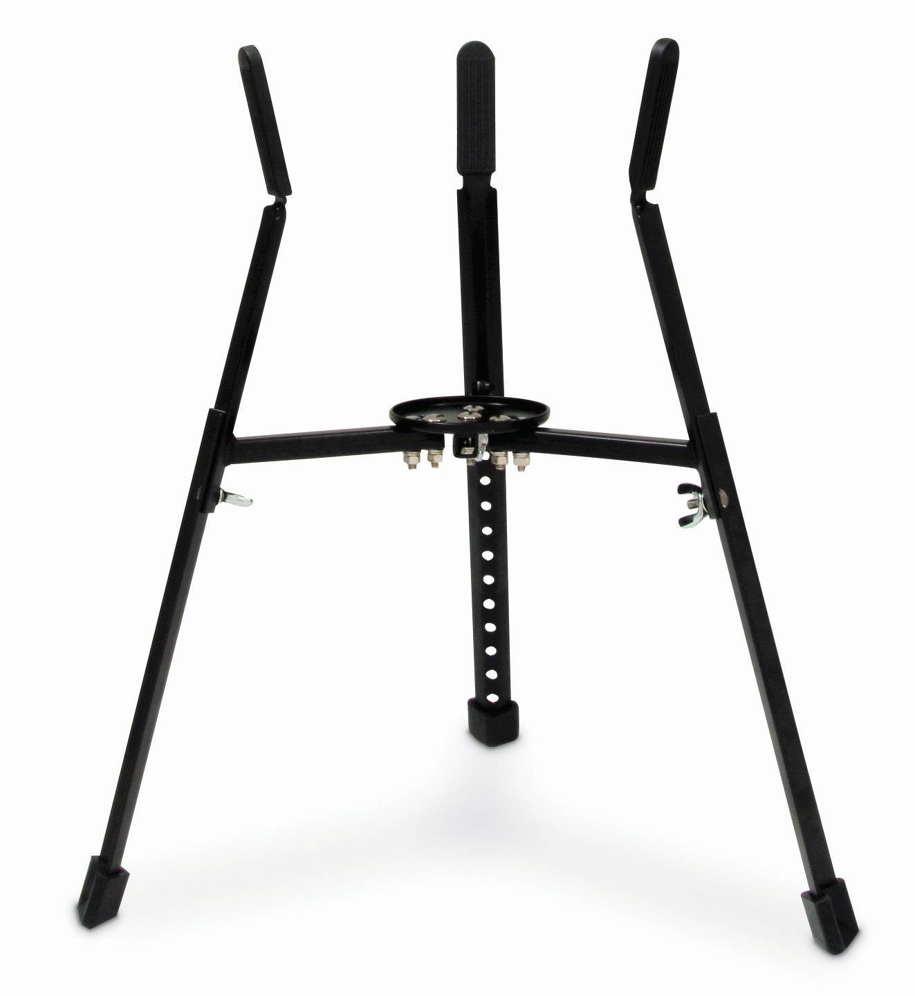 Este robusto suporte de aço com revestimento em pó preto, ajustável em altura, apresenta um design dobrável e compacto para fácil instalação, desmontagem e transporte. Cabe a maioria dos tamanhos de conga.