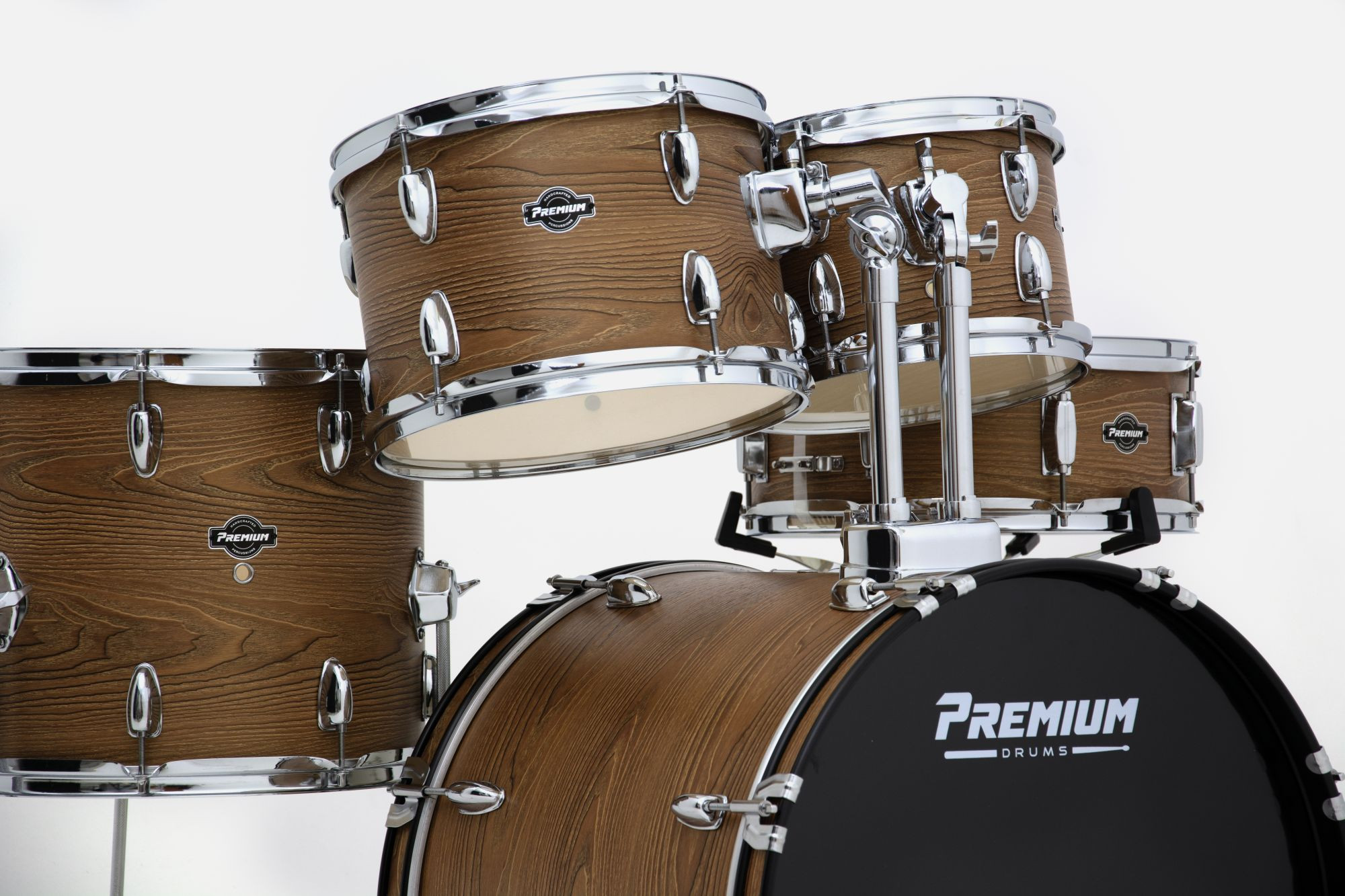 A bateria Premium PM22 combina design sofisticado e acabamento impecável com sonoridade marcante, proporcionando uma experiência musical .Possui ferragens cromada que unem resistência e estilo, acompanha banco e pratos.