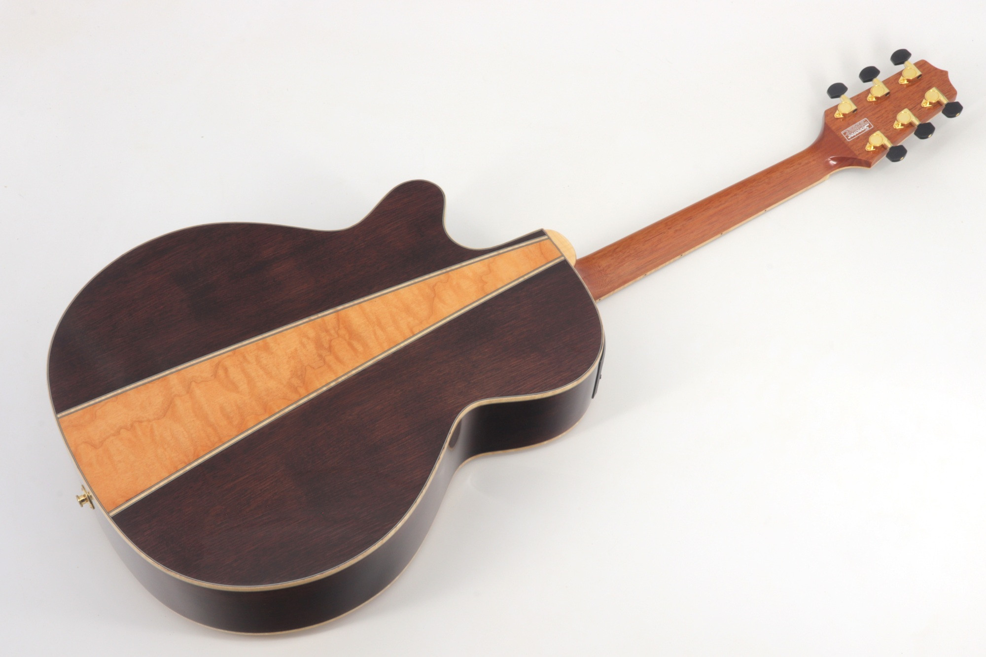 - Madeira de Fundo: Black Walnut Laminado + Figured Maple Laminado